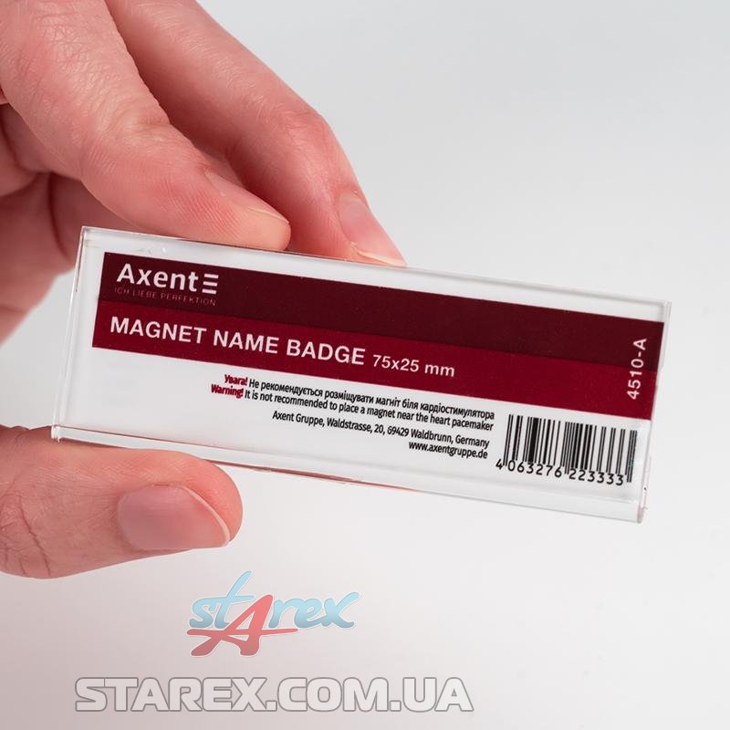 - Бейдж на магніті Axent 4510 виготовлений з акрилу