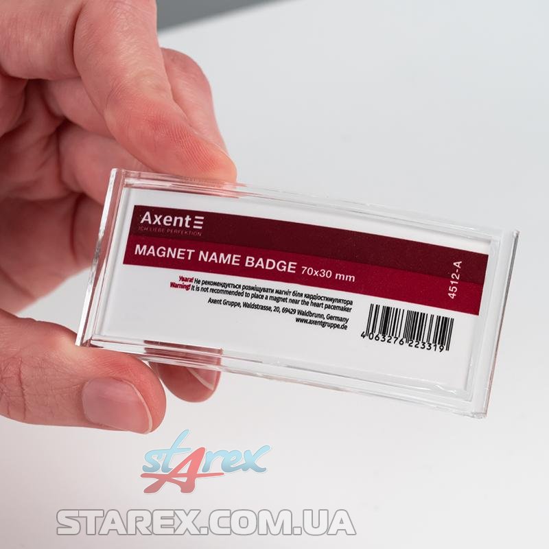 - Бейдж на магніті Axent 4512 виготовлений з акрилу