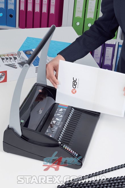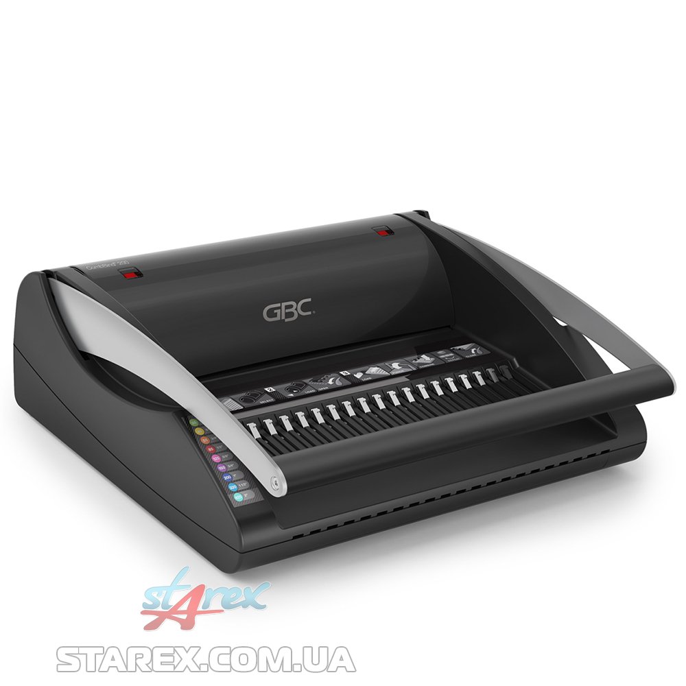 Брошурувальник CombBind C200 ідеально підходить для офісів з регулярною потребою в брошуруванні. Пробиває 20 аркушів щільністю 80г/м² і переплітає 330 аркушів формату A3 (у книжковій орієнтації), A4 і A5. Унікальна технологія зниження зусиль дозволить легко й швидко проперфорувати аркуші. Індикатори вирівнювання аркушів покажуть, правильно чи завантажений аркуш для перфорації.