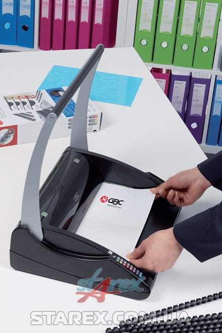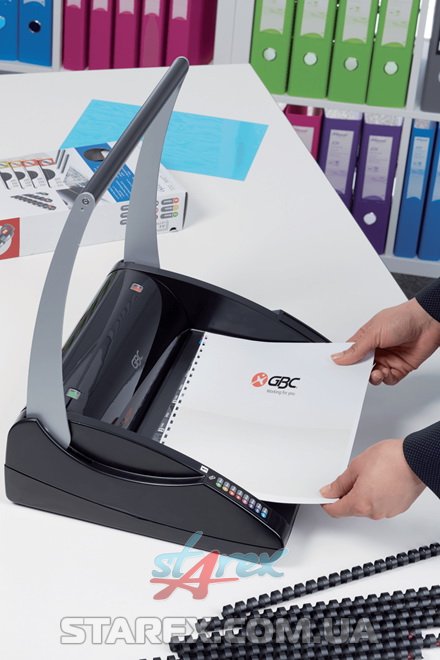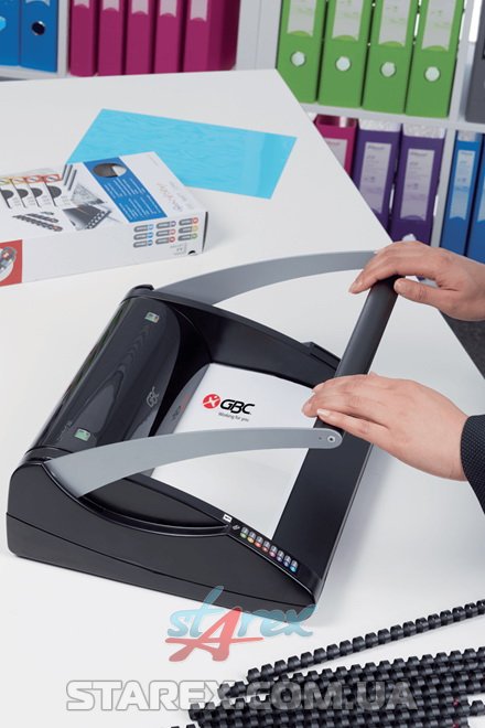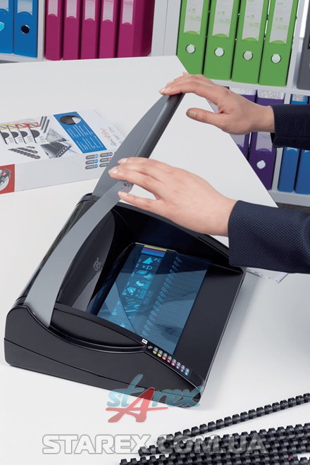 Особливості: "Ідеальна" перфорація малого зусилля, як ніколи, спрощує підготовку документів. Забудьте про помилки: унікальні індикатори вирівнювання паперу EasyViewTM гарантують абсолютно точне розташування аркушів перед перфорацією. Лінійка розмірів документа з колірним маркуванням, що дозволяє без зайвих зусиль вибрати пружину потрібного діаметра. "Розумний" розмикаючий важіль: завдяки розтяжці пружини простіше надягати перфоровані аркуші на її зубці.
