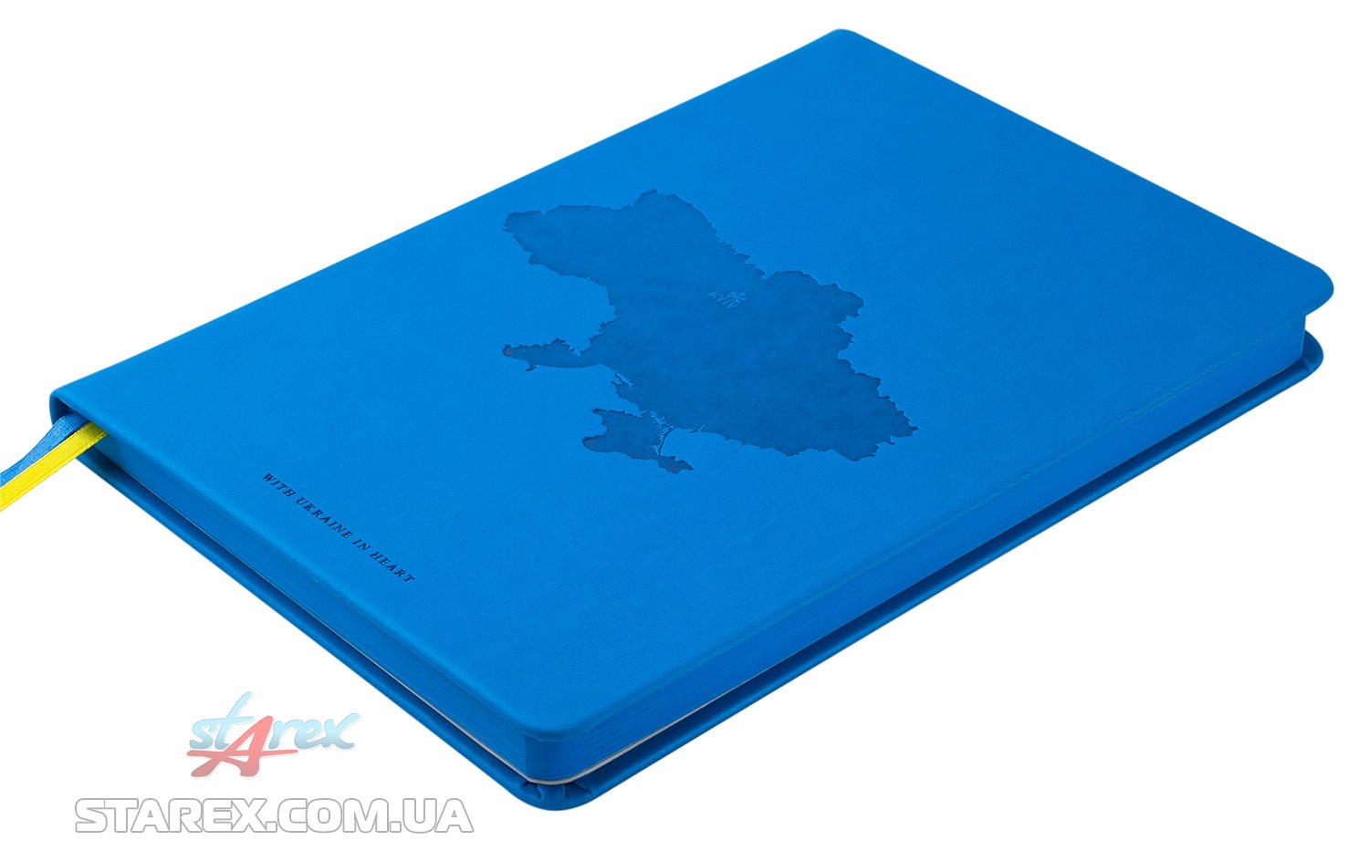 Блокнот UKRAINE – діловий блокнот для тих, хто кожної миті бажає відчувати Україну в своєму серці. Оригінальне сліпе тиснення мапи України на обкладинці зі штучної шкіри з soft-touch покриттям прийдеться до вподоби завзятим патріотам нашої Вітчизни