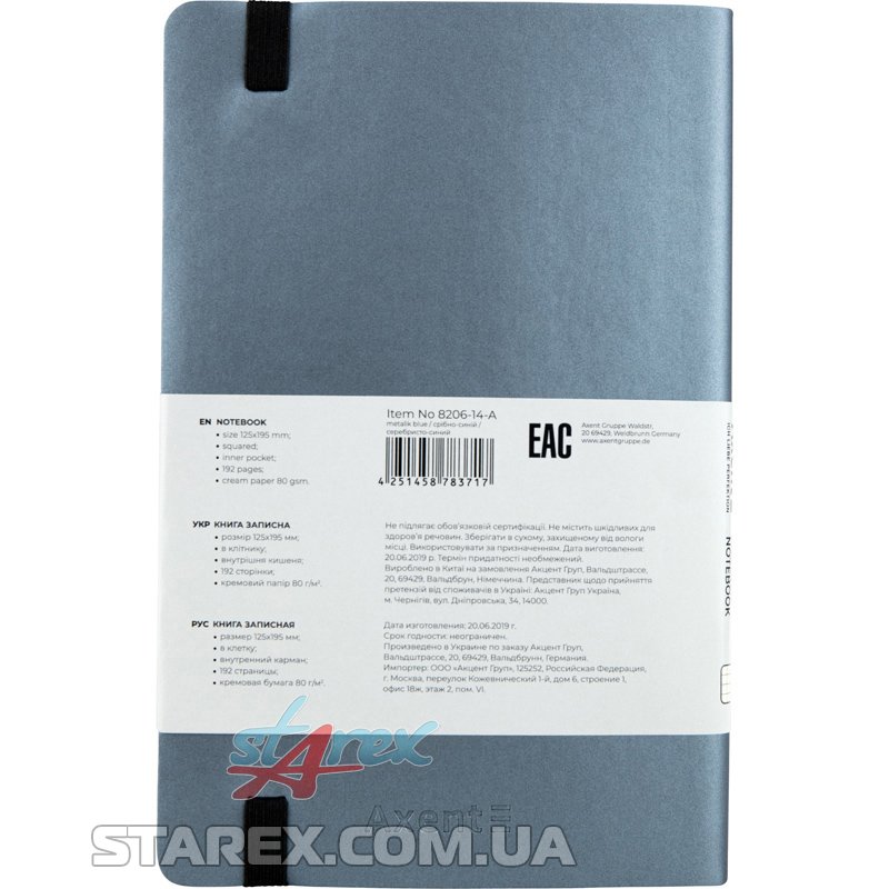 Книга записна Partner Soft А5, клітинка, срібно-синій