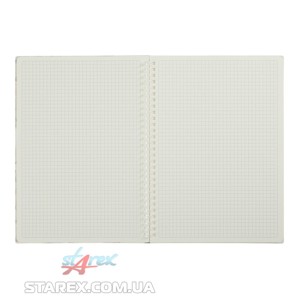 - кріплення аркушів: пластикова вертикальна пружина (збоку), що дозволяє легко перегортати та загинати сторінки (все лягає ідеально), а також зручно писати на обох сторінках розвороту