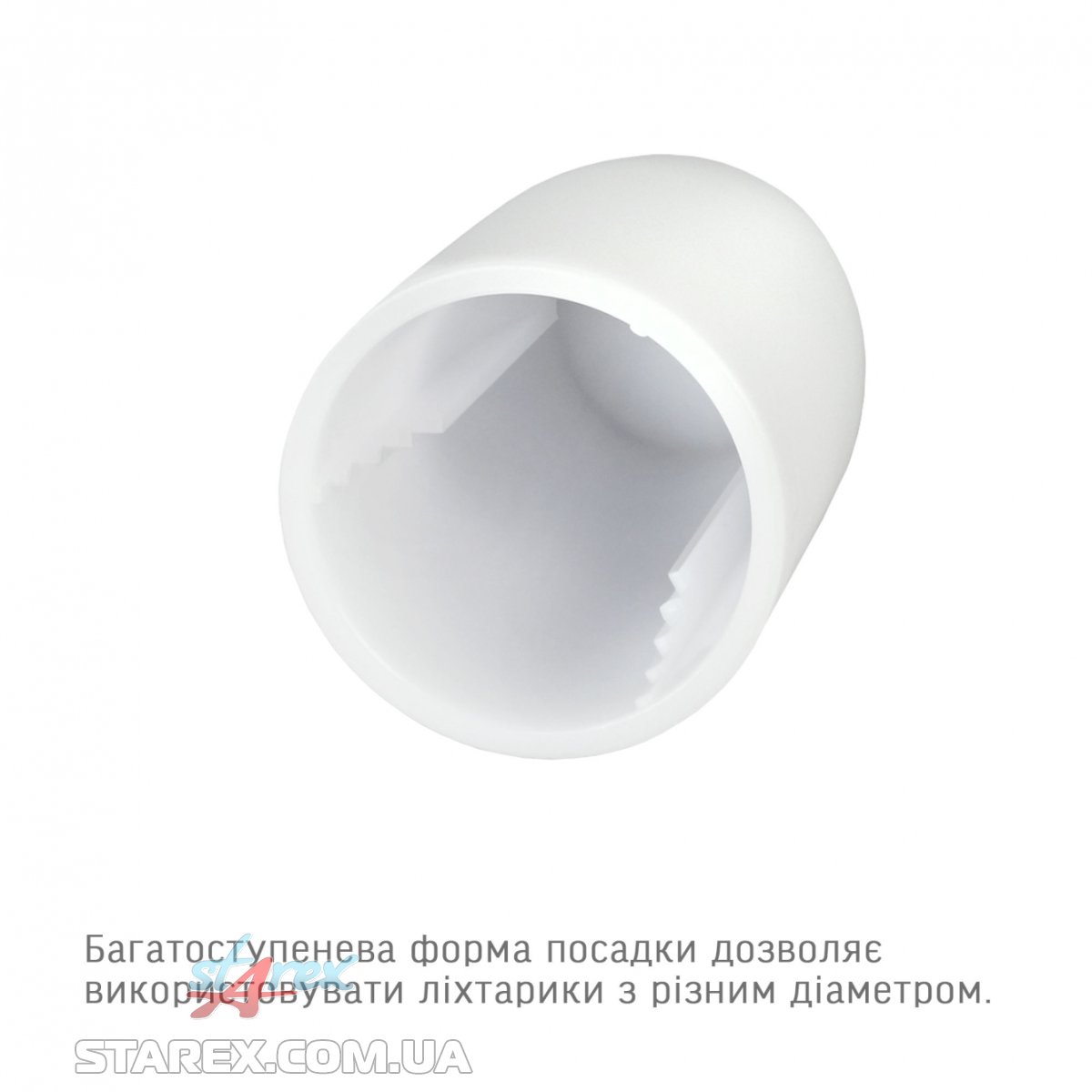 Всередині дифузора на корпусі реалізована багатоступенева форма посадки, що дозволяє використовувати дифузор для ліхтариків з різним діаметром.