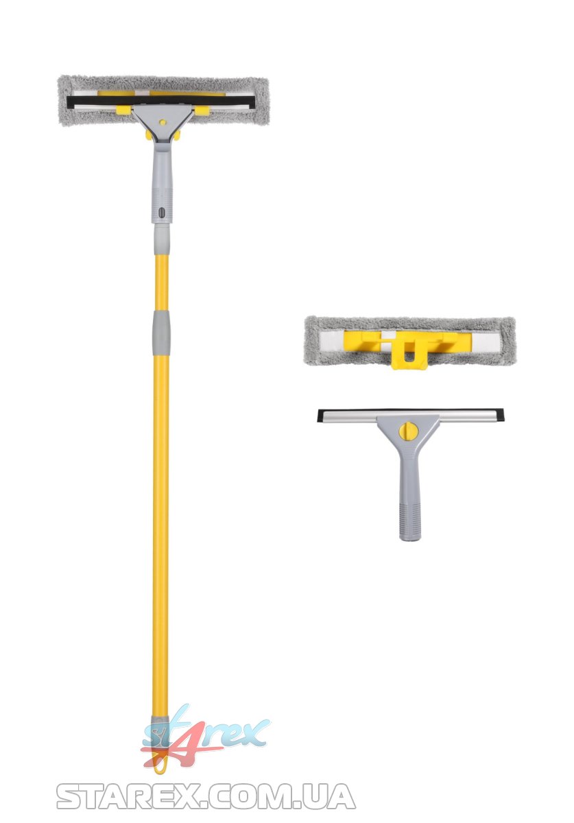 - Зручна конструкція дозволяє без зайвих зусиль зняти насадку з мікрофібри та користуватися лише скребком