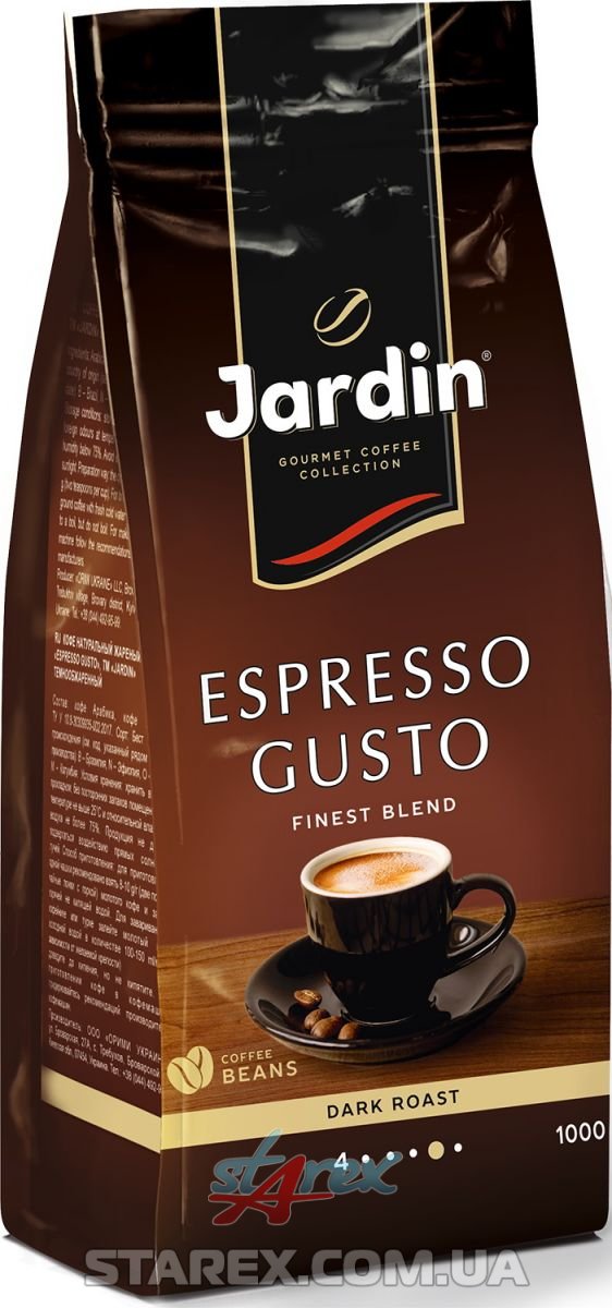 Jardin "Espresso Gusto" - традиції італійського еспресо. Бленд кращих сортів Арабіки й Робусти ідеально підходить для готування чашечки справжнього еспресо. Чашечка Jardin Espresso Gusto, відкриваюча багатий наповнений смак з найтоншими мигдальними нотами, стане ідеальним завершенням обіду, ланчу або вечері