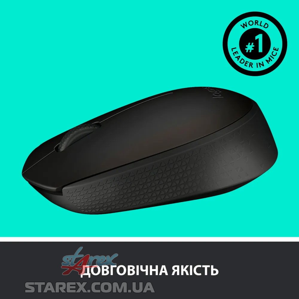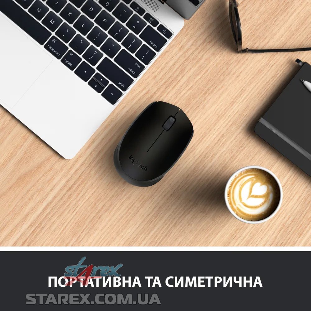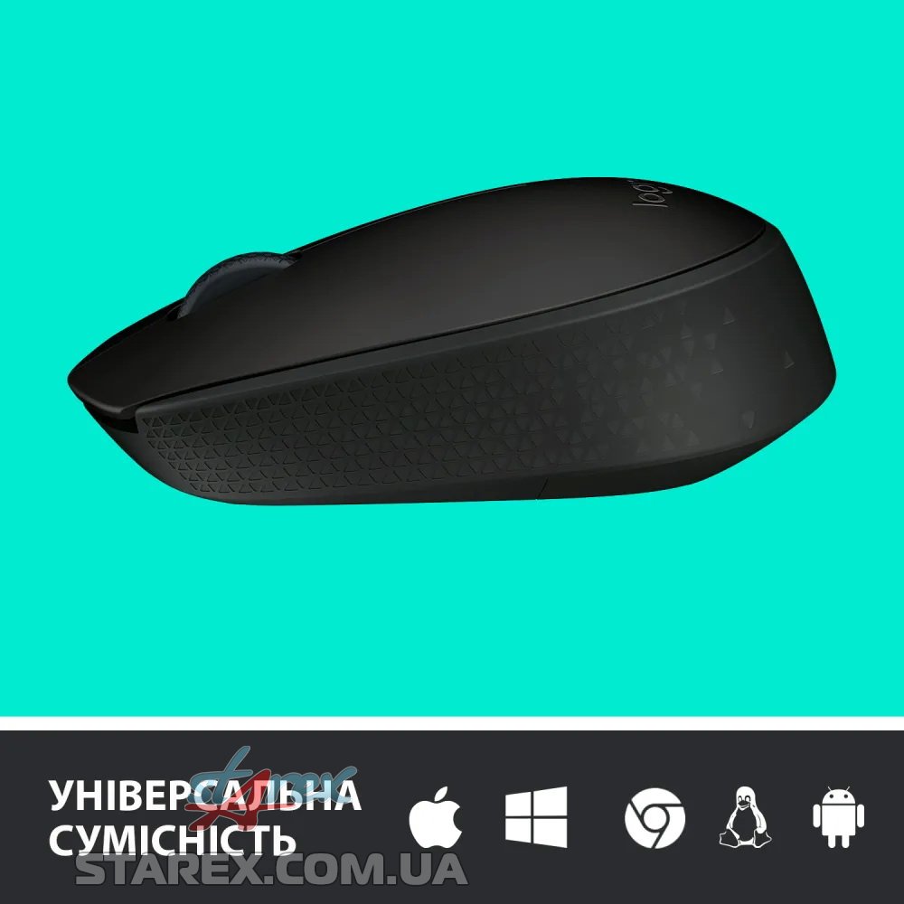 Бездротова миша Logitech M170 поєднує в собі зручність бездротового під'єднання і надійність дротового з'єднання. Завдяки використанню удосконаленої бездротової технології зв'язку на частоті 2.4 ГГц від Logitech діапазон її дії становить 10 метрів. Ця доступна за ціною миша може працювати до 12 місяців від однієї батареї типу AA. Налаштувати її дуже легко - просто вставте мініатюрний бездротовий приймач в USB-слот. Миша M170 не вимагає сполучення та інсталяції програмного забезпечення. Сумісна з операційними системами Windows, Mac і Chrome
