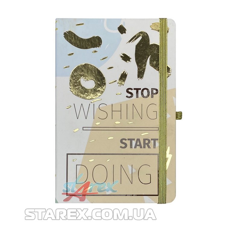 - Вертикальна гумка для фіксації блокнота в закритому стані й петелька для ручки одного кольору, у тон дизайну обкладинки