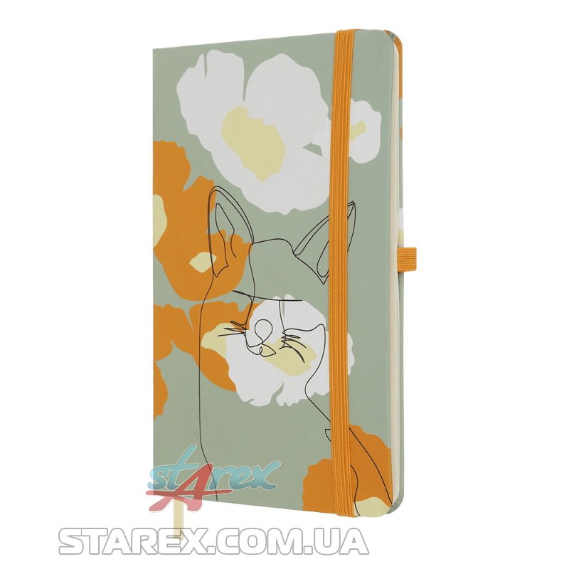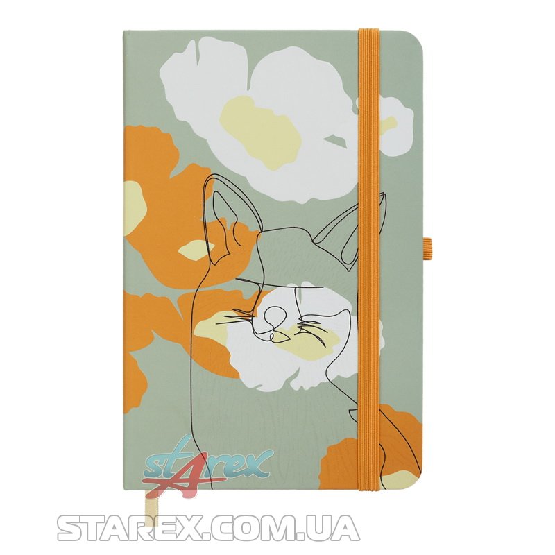 - Вертикальна гумка для фіксації блокнота в закритому стані й петелька для ручки одного кольору, у тон дизайну обкладинки