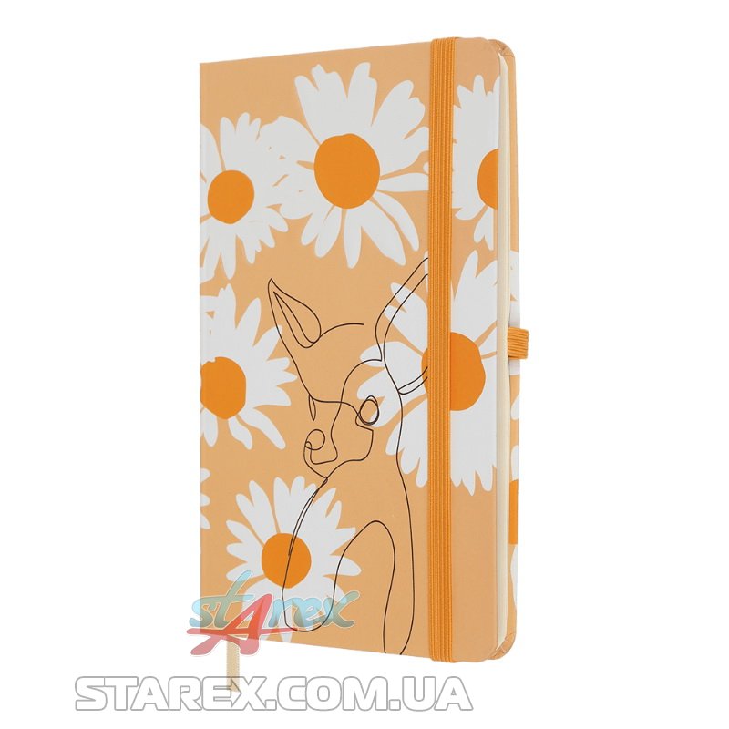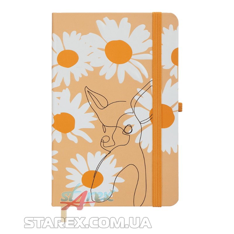 - Вертикальна гумка для фіксації блокнота в закритому стані й петелька для ручки одного кольору, у тон дизайну обкладинки