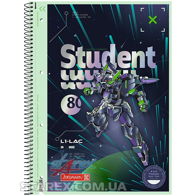 Незвичайний коледж-блок від BRUNNEN із тематичною обкладинкою з роботом-героєм, часткове покриття металевою фольгою.