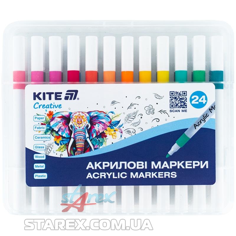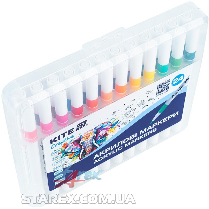 Маркери акрилові, 24шт Kite Creative