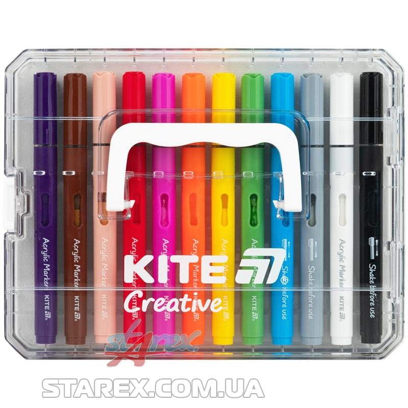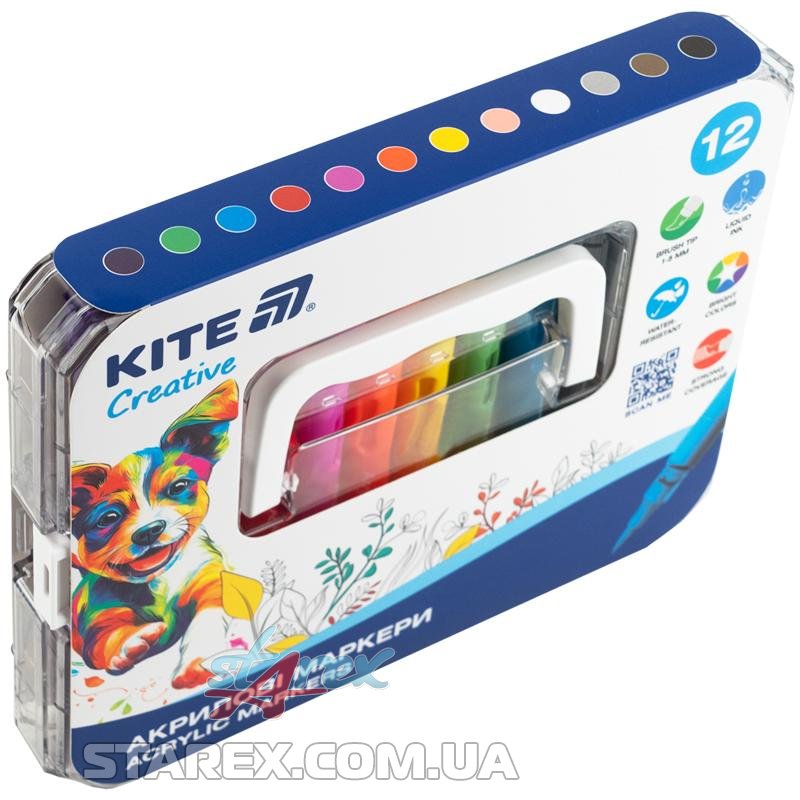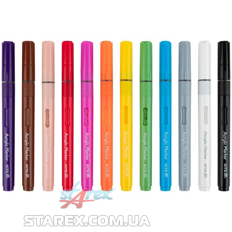 Маркери акрилові з рідкими чорнилами, 12шт Kite Creative