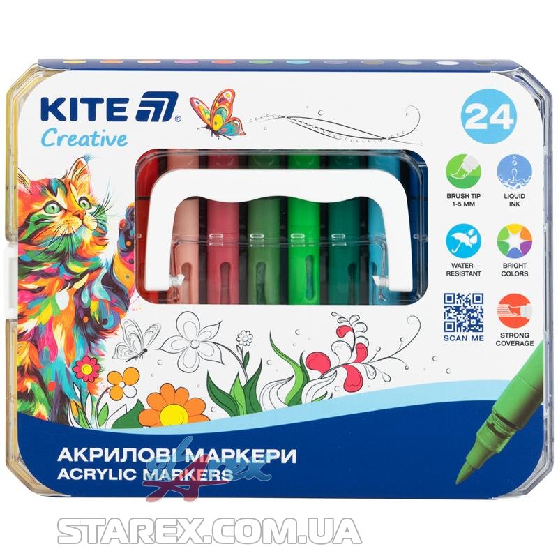 Маркери акрилові з рідкими чорнилами, 24шт Kite Creative