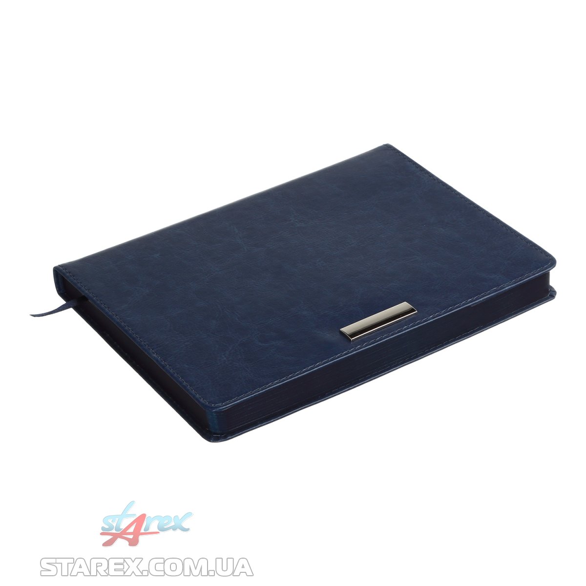 Гнучка обкладинка щоденника SALERNO виконана під натуральну шкіру. Унікальним елементом дизайну є металевий декор - шильда на лицьовій стороні обкладинки. Гармонійно доповнює дизайн тонований зріз внутрішнього блоку в колір обкладинки.