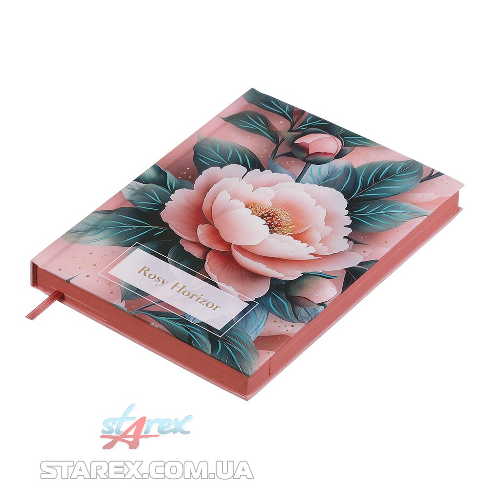 Жорстка поліграфічна обкладинка щоденника FATTORE виконана у вишуканому квітковому дизайні. Гармонійно доповнює та надає завершеності дизайну тонований зріз внутрішнього блоку