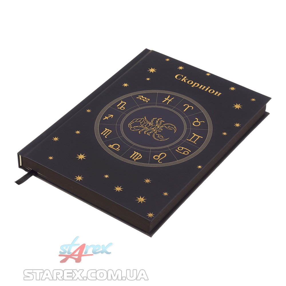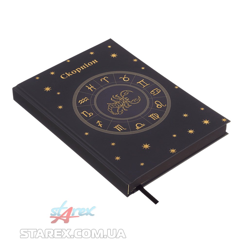 Жорстка поліграфічна обкладинка щоденника ZODIAK має дизайн в астрологічному стилі зі знаком зодіаку "Скорпіон". Гармонійно доповнює та надає завершеності дизайну тонований зріз внутрішнього блоку