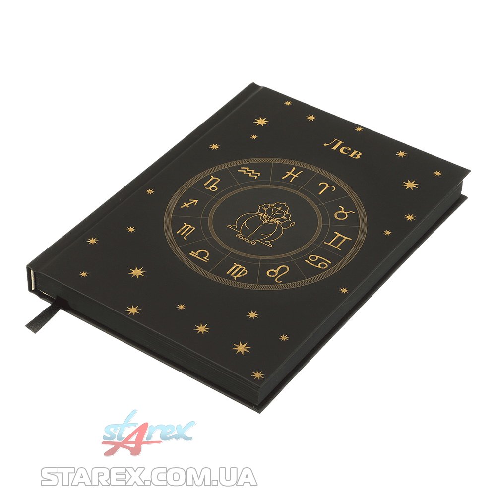 Жорстка поліграфічна обкладинка щоденника ZODIAK має дизайн в астрологічному стилі зі знаком зодіаку "Лев". Гармонійно доповнює та надає завершеності дизайну тонований зріз внутрішнього блоку