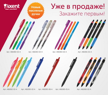 Поспішаємо повідомити, що асортимент пишучих приналежностей поповнився масляними ручками ТМ AXENT! Європейська якість дозволяє продукції AXENT бути надійними й функціональними помічниками в кожному офісі й у діловодстві! Дата публікації 19.05.2017.