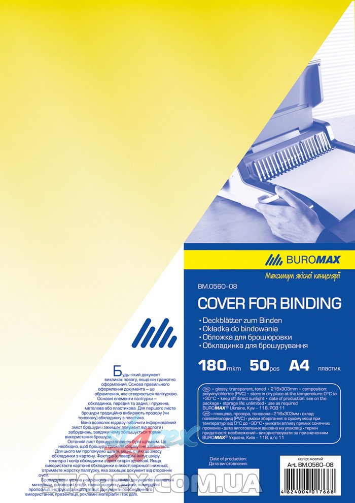 Обкладинки для палітурки прозорі формат А4 180мкм, 50шт, жовтий