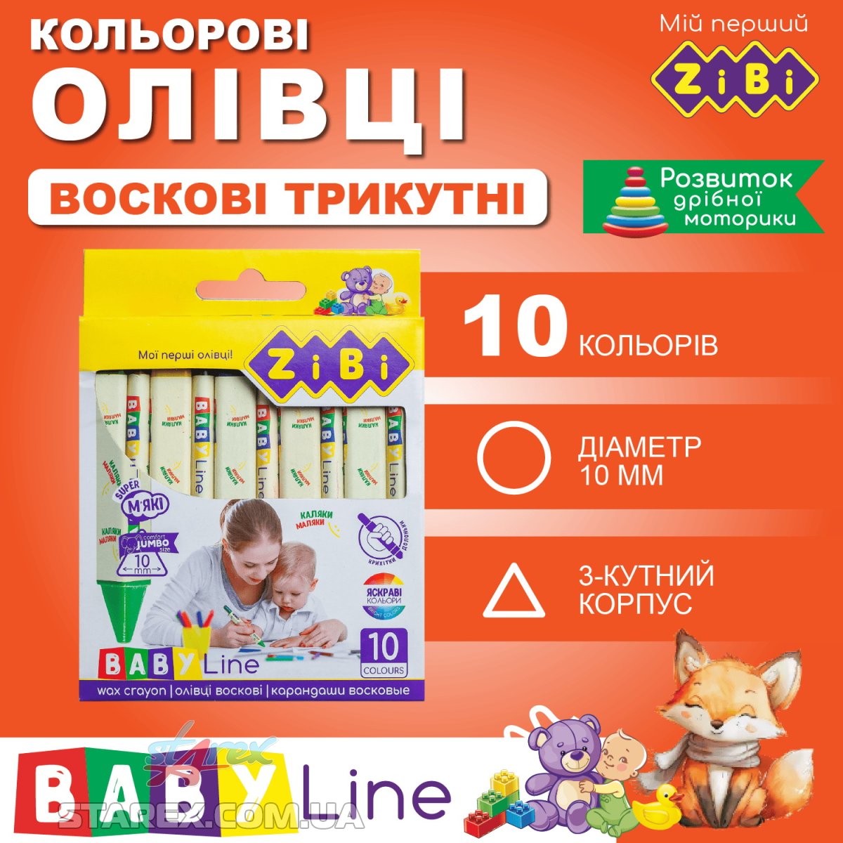 Олівці воскові JUMBO, 10 кольорів, тригранні, BABY Line