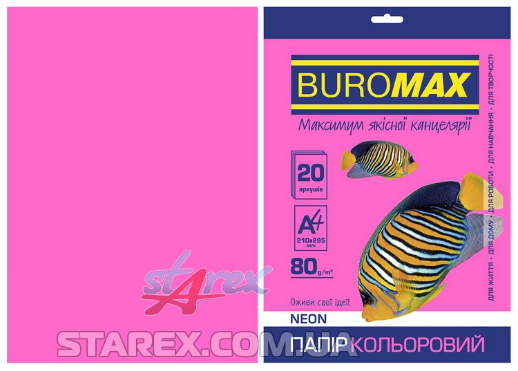 Папір кольоровий А4, 80г/м2, NEON, малиновий, 20л/уп