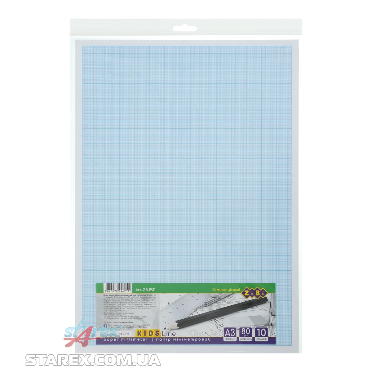 Папір міліметровий А3 80г/м2, блакитна 10 аркушів