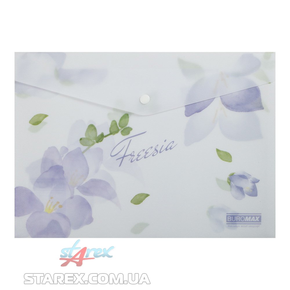 Папка-конверт на кнопці серії ARABESKI підходить для систематизації, зберігання і транспортування документів. Папка виконана в дуже ніжному і свіжому квітковому дизайні, що неодмінно буде приваблювати і надихати! Така папка підійде для відвідування ділових зустрічей, транспортування та зберігання паперів, навчальних матеріалів, посібників та багато іншого. Папка стане в нагоді співробітникам офісних і бізнес центрів, фінансових відділів і установ, студентам і школярам, захистить вміст від зминання, намокання чи забруднення.