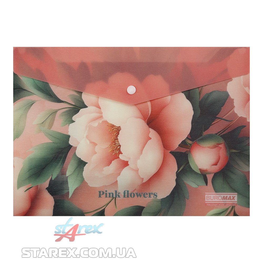 Папка-конверт на кнопці серії ARABESKI підходить для систематизації, зберігання і транспортування документів. Папка виконана в дуже ніжному і свіжому квітковому дизайні, що неодмінно буде приваблювати і надихати! Така папка підійде для відвідування ділових зустрічей, транспортування та зберігання паперів, навчальних матеріалів, посібників та багато іншого. Папка стане в нагоді співробітникам офісних і бізнес центрів, фінансових відділів і установ, студентам і школярам, захистить вміст від зминання, намокання чи забруднення.