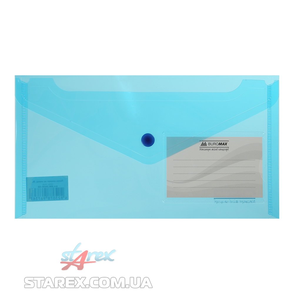 Папка-конверт на кнопці формат DL TRAVEL 24х13см, синя