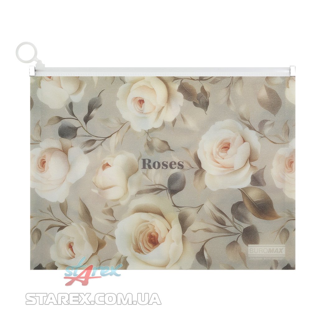 Папка з блискавкою ARABESKI - це вишуканий і функціональний аксесуар для зберігання і транспортування паперів! Така папка захистить документи, малюнки, ескізи, посібники, зошити, брошури та багато інших паперових виробів від заминання, намокання чи забруднення. Оригінальний дуже ніжний і свіжий квітковий дизайн папки неодмінно буде приваблювати, радувати око власника та надихати!