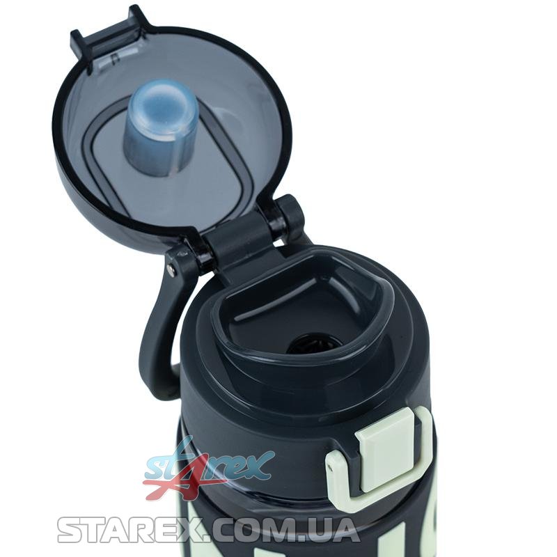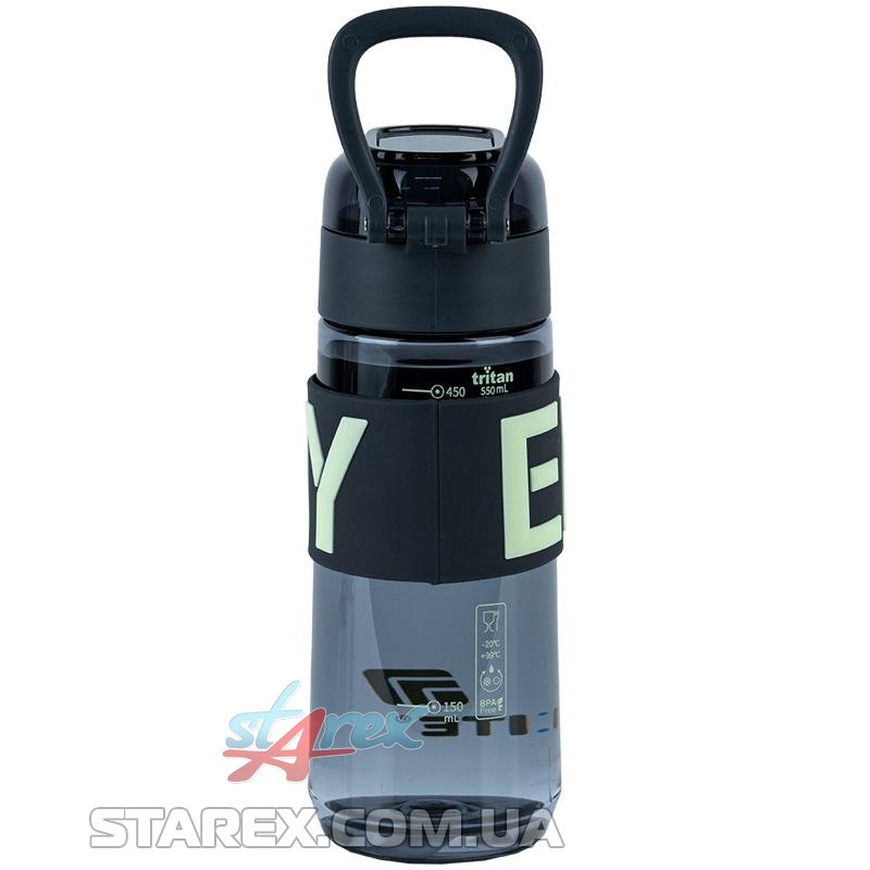 Завдяки об’єму 550 мл вона ідеально підходить для школи, тренувань або прогулянок. Матеріал — міцний та безпечний тритан, що не містить бісфенолу-А. Надійна кришка з кнопкою захищає від протікань і легко відкривається навіть однією рукою. А силіконова вставка на корпусі запобігає ковзанню в руці — зручно, навіть коли поспішаєш.