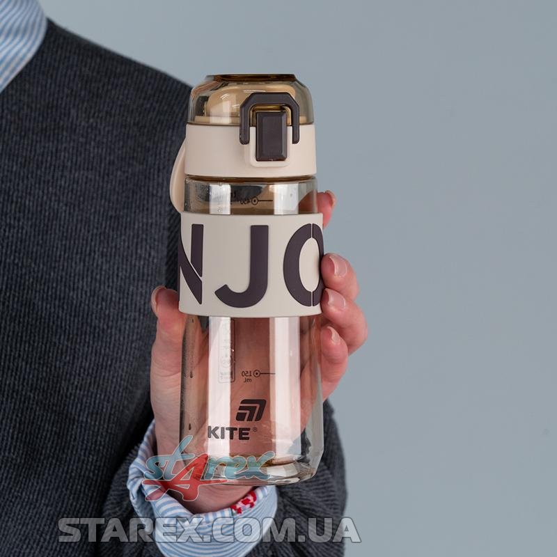 Пляшечка для води Kite K25-1232-3 550 мл — стильна, зручна та функціональна. Лаконічний корпус із великим написом ENJOY не просто привертає увагу — він заряджає позитивом. Така пляшка пасуватиме під усе: рюкзак, сумку, стиль дня.