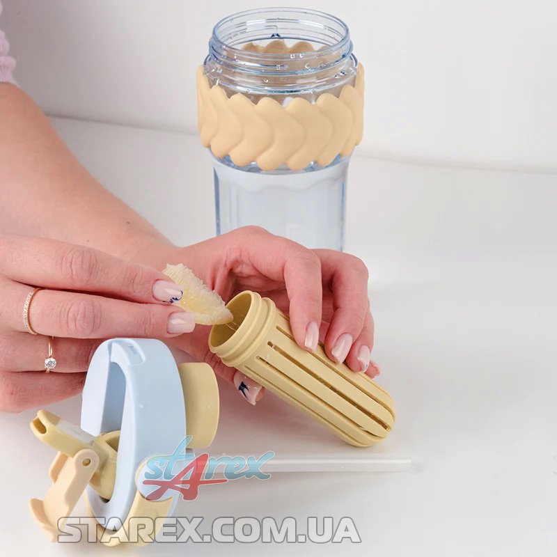 Корпус виготовлений із безпечного тритану — матеріалу, який не містить шкідливих речовин і не вбирає запахів. Усередині є знімна вставка для охолодження напоїв — достатньо покласти туди лід або заморожені ягоди. Стакан ідеально підійде для школи, прогулянок або активного відпочинку на природі.