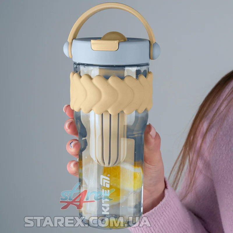 Стакан для води Kite K25-1231-1 900 мл — це зручність, стиль і турбота про здоров’я в одному аксесуарі. Він вирізняється нестандартним дизайном: рельєфне силіконове кільце не тільки прикрашає, а й забезпечує надійне захоплення без ковзання. Завдяки компактній формі, стакан зручно тримати в руці, а практична ручка дозволяє зручно переносити його.
