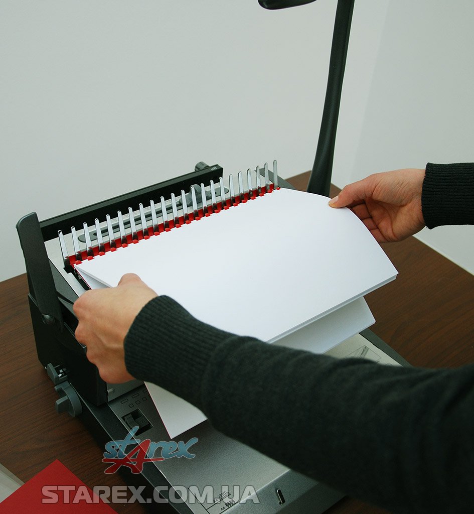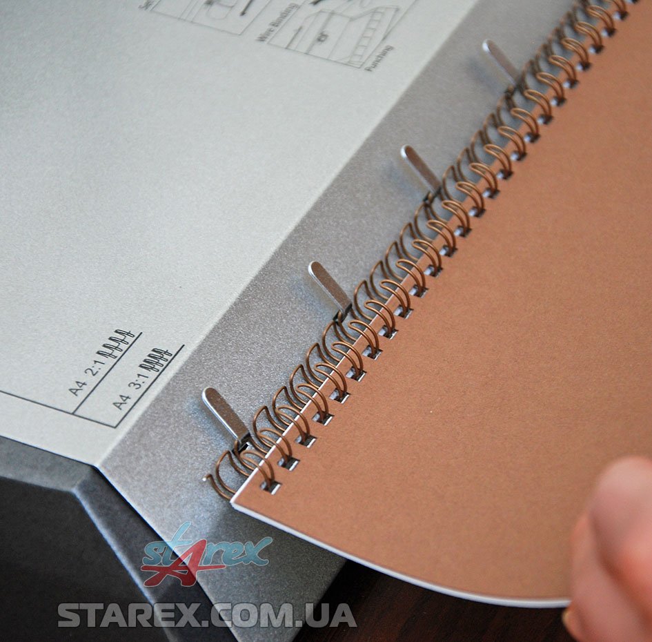 - Максимальная толщина переплетаемой брошюры на металлическую пружину 3:1: 120 листов 80г/м² (12мм)