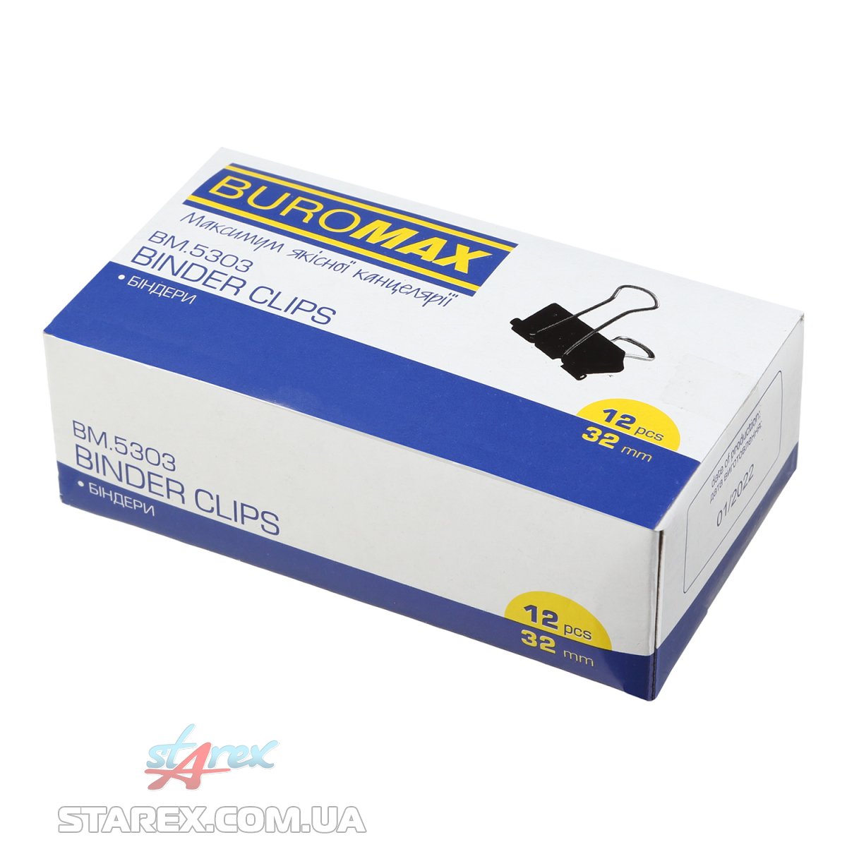 Биндер (зажим для бумаг) 32мм, 12шт/уп