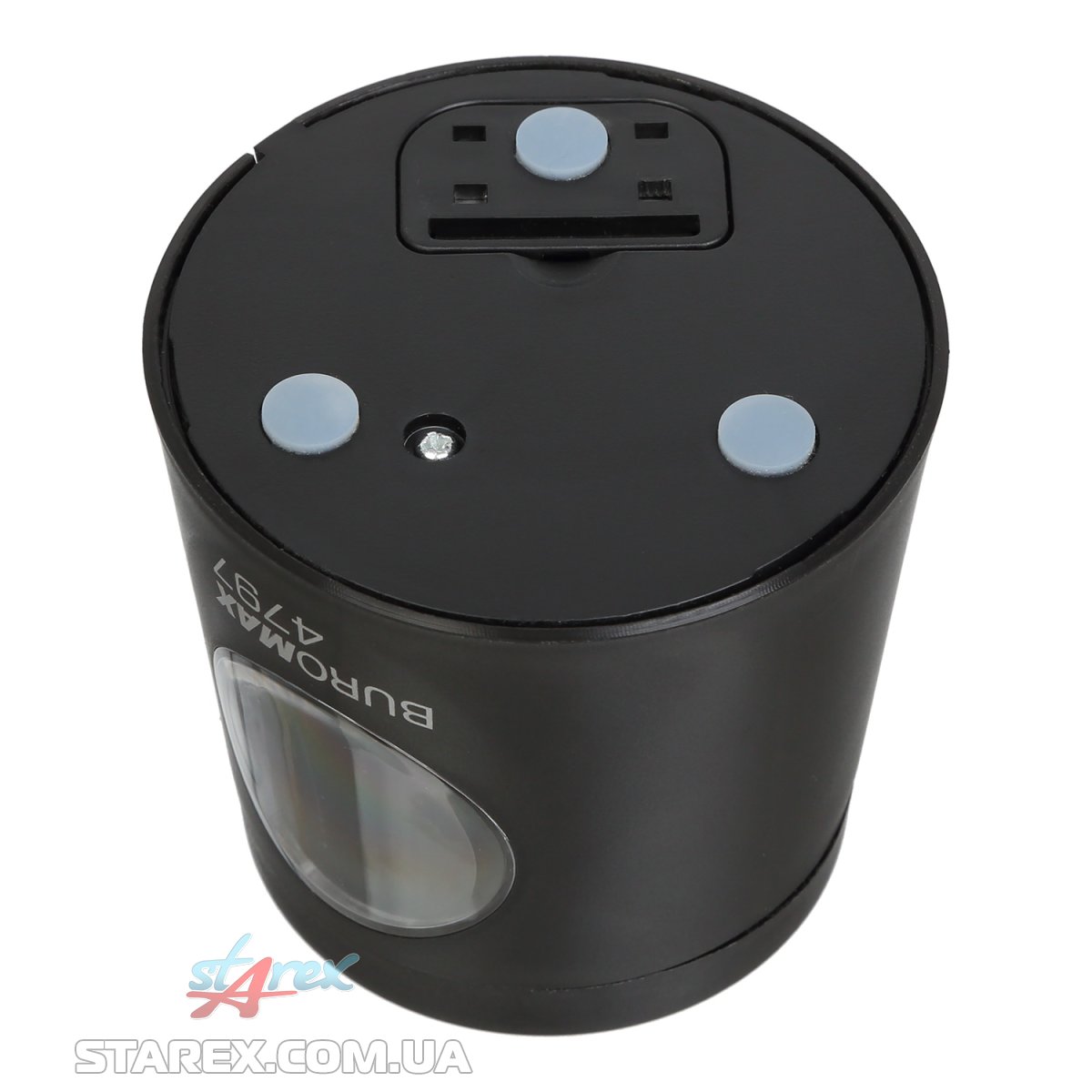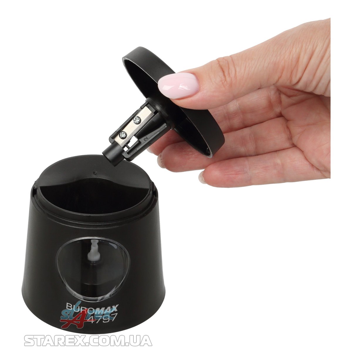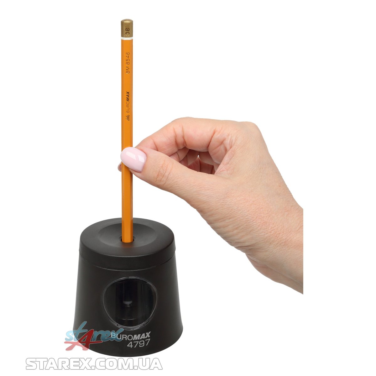 Автоматическая (электрическая) точилка – это очень легкая, быстрая и качественная заточка карандашей. Подойдет для чернографитовых и цветных карандашей. Не занимает много места. Выдержанный в лаконичном стиле черный матовый корпус цилиндрической формы. Инновационная точилка станет полезным помощником на рабочем месте школьника, студента, офисного работника.