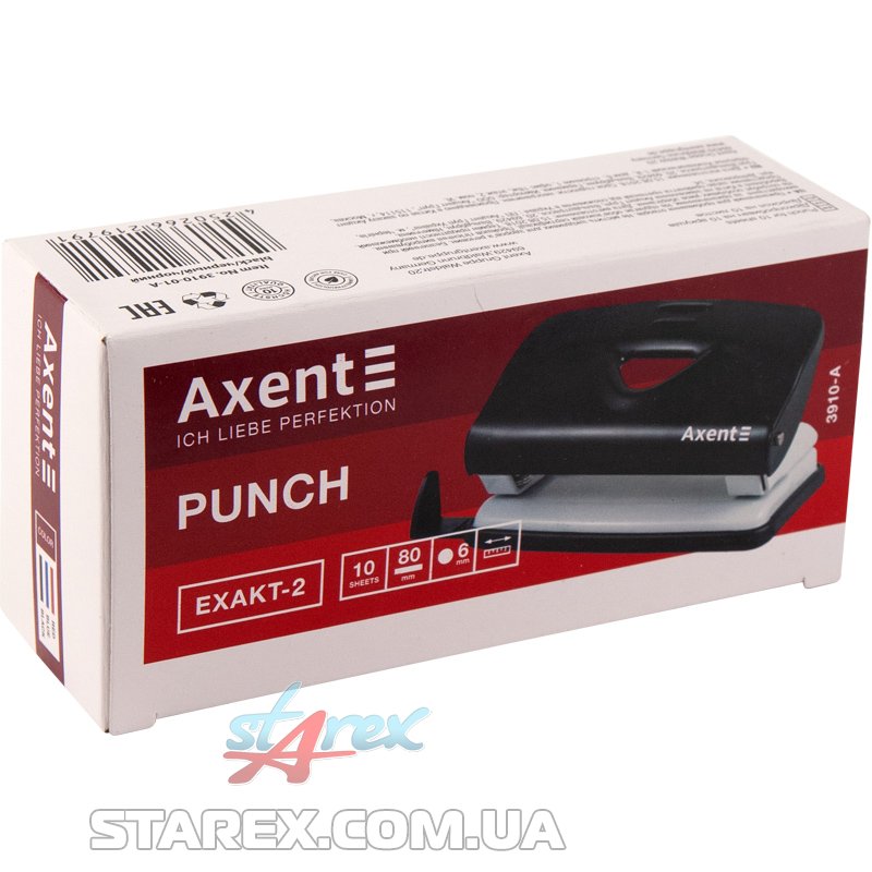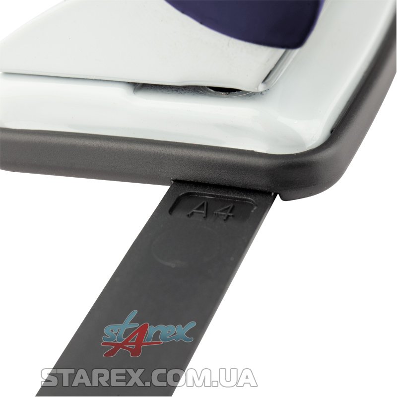 Дырокол Exakt-2 принадлежит к металлической серии. Прочный металлический корпус и надежный металлический механизм обеспечивают комфортную работу дырокола и его долговечность, даже при интенсивной нагрузке.. Лезвия долго остаются острыми. Для удобства дырокол оснащён выдвижной ограничительной линейкой с точной шкалой форматов бумаги (А3, А4, А5). Выдвижная линейка необходима для позиционирования листов бумаги, которые вставляются в дырокол, и позволяет всегда получать точный результат и одинаковые стопки подшитых документов с совпадающими отверстиями.Съемный резервуар для конфетти открывается мягко. Прорезиненная подошва предотвращает скольжение дырокола по поверхности. Диаметр отверстия 6 мм, расстояние между пробитыми отверстиями 80 мм.