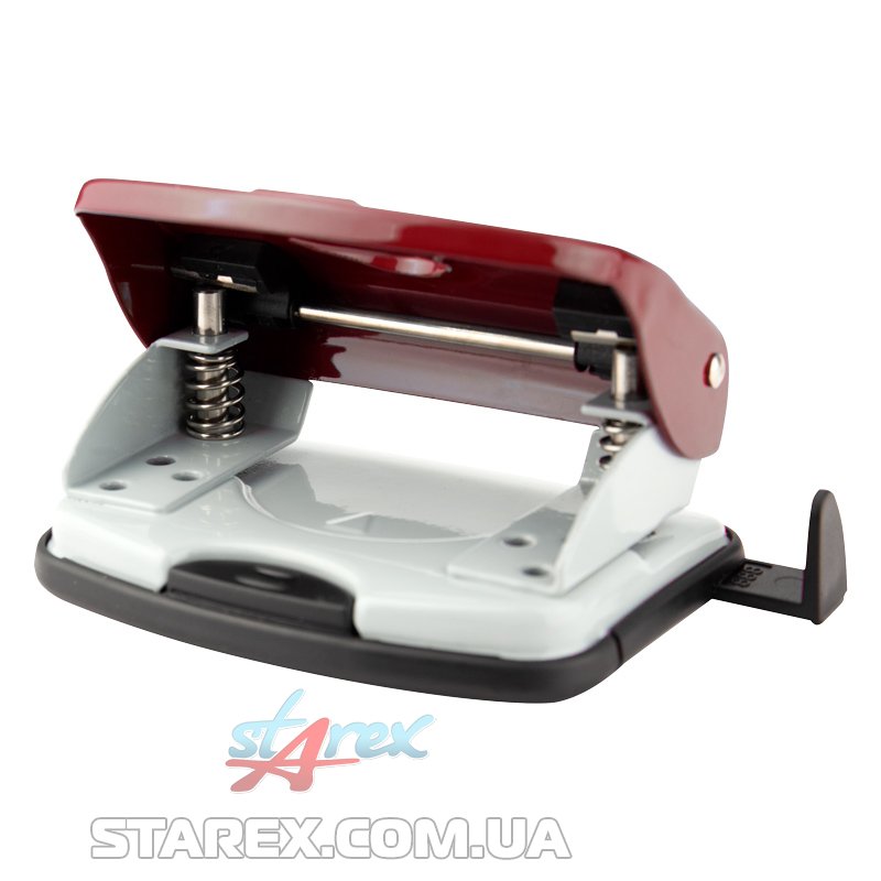 Дырокол Exakt-2 принадлежит к металлической серии. Прочный металлический корпус и надежный металлический механизм обеспечивают комфортную работу дырокола и его долговечность, даже при интенсивной нагрузке.. Лезвия долго остаются острыми. Для удобства дырокол оснащён выдвижной ограничительной линейкой с точной шкалой форматов бумаги (А3, А4, А5). Выдвижная линейка необходима для позиционирования листов бумаги, которые вставляются в дырокол, и позволяет всегда получать точный результат и одинаковые стопки подшитых документов с совпадающими отверстиями.Съемный резервуар для конфетти открывается мягко. Прорезиненная подошва предотвращает скольжение дырокола по поверхности. Диаметр отверстия 6 мм, расстояние между пробитыми отверстиями 80 мм.