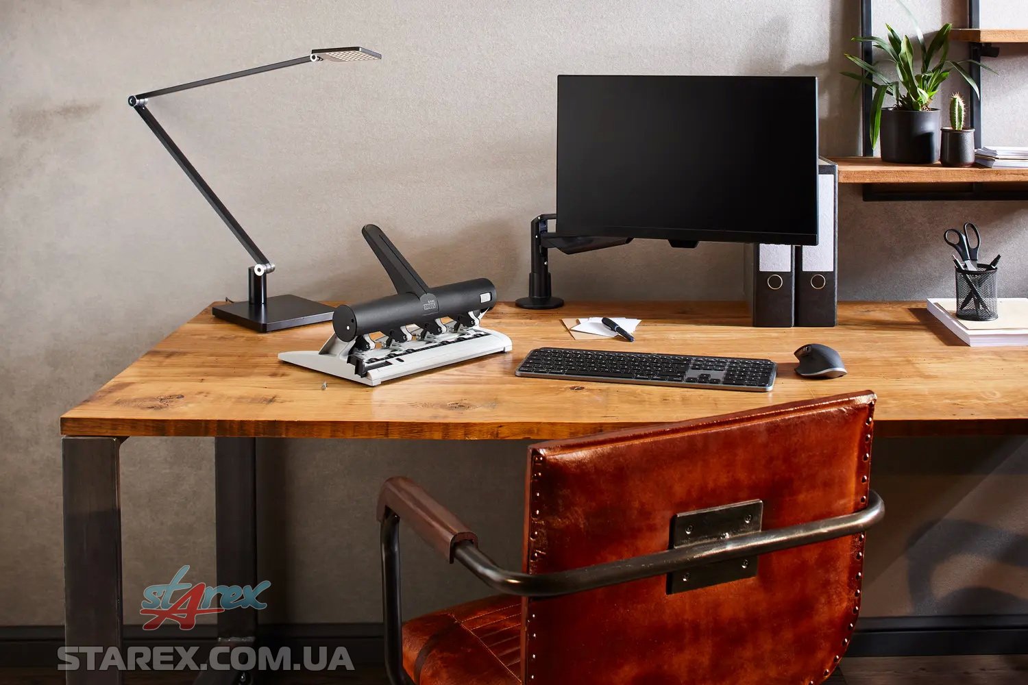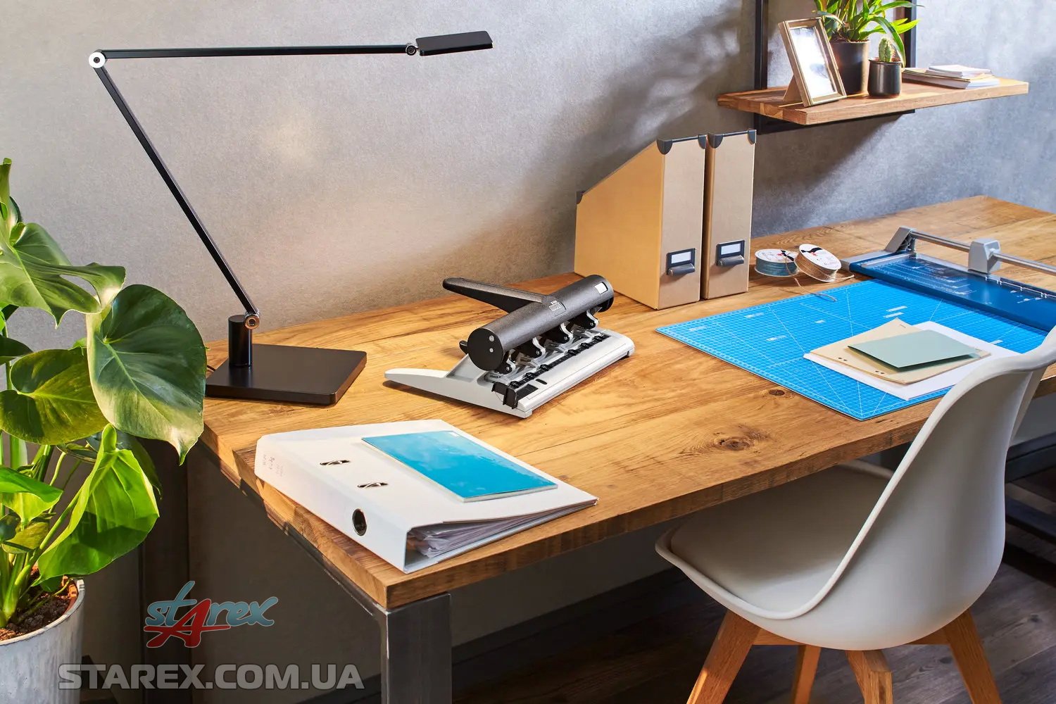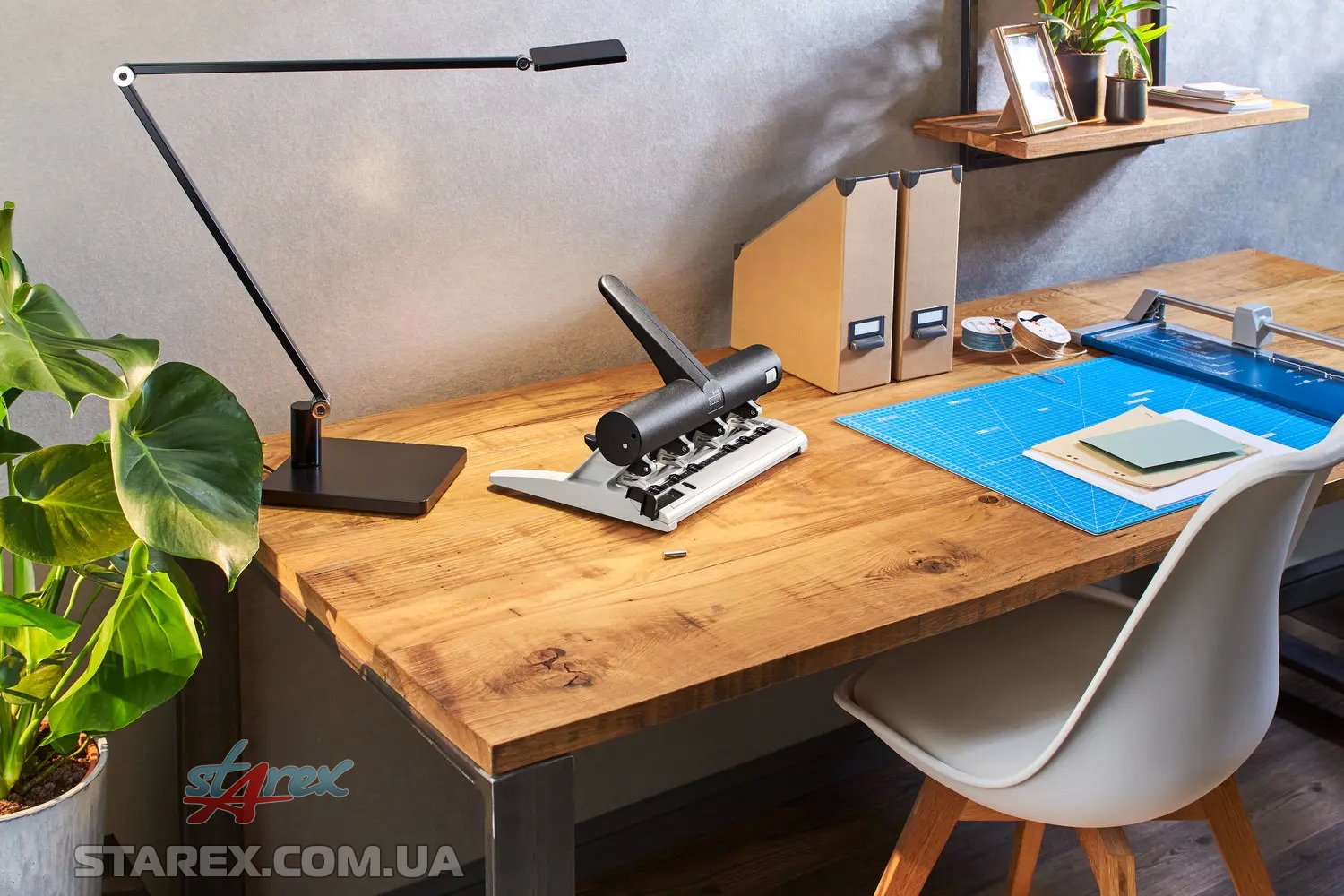 Важіль з фіксатором для компактного зберігання. Стійкі та нековзаючі ніжки-опори. 4 окремих, легко регулюємі пробивних різця на пружинах. Запатентована знімна лінійка-фіксатор для зручного регулювання формату пробивання отворів. Вага: близько 2280 г. Максимальна кіл-ть аркушів: 30. Гарантія: 10 років.