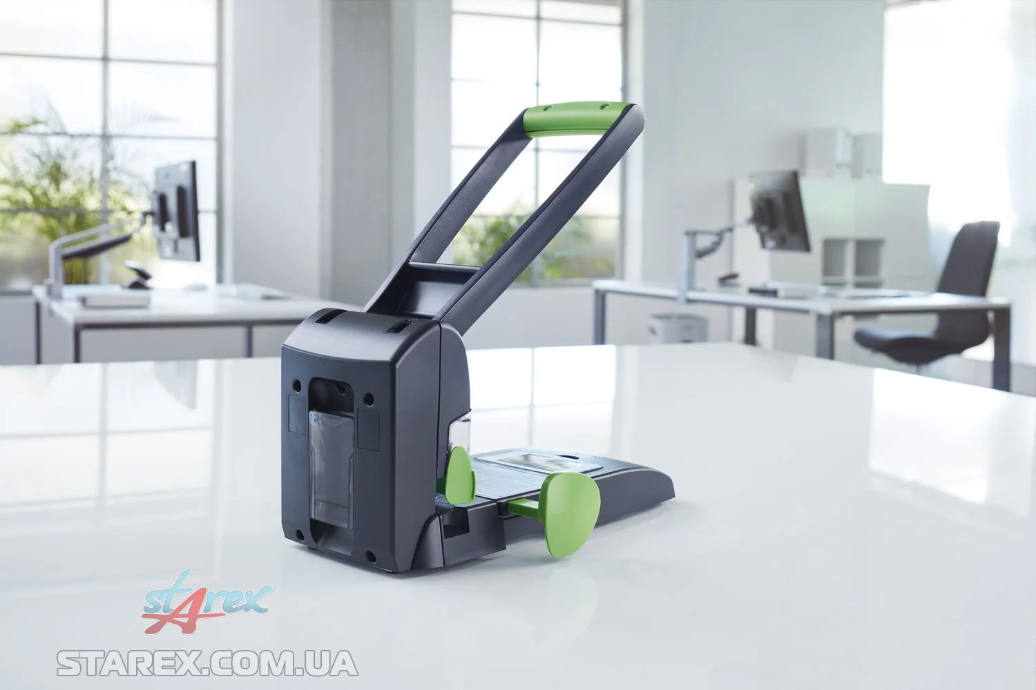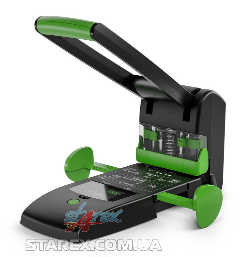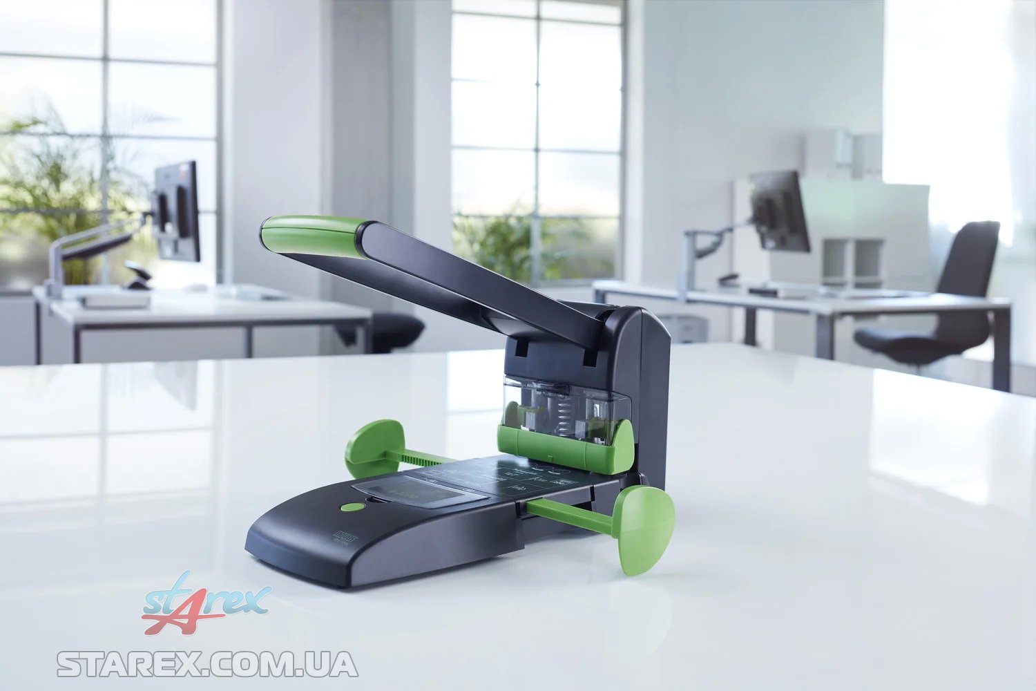 Потужний діркопробивач паперових блоків "2 в 1" для швидкого пробивання 2 і 4 отворів. Суцільнометалевий в пластиковому корпусі. Автоматична фіксація паперу по центру для точного пробивання отворів. Зручне пробивання 4 отворів завдяки висувною лінійці-фіксатора. Фіксатор по DIN для акуратної підшивки документів. Зручна ручка для легкого пробивання отворів завдяки досконалому передавальному механізму. Безпечний в експлуатації завдяки захисному пристрою рукоятки. Проста, яка не потребує інструментів заміна швидкозношуваних деталей. Стійкі та нековзаючі ніжки-опори. Вага: близько 3500 г. Максимальна кіл-ть аркушів: 200. Гарантія: 10 років