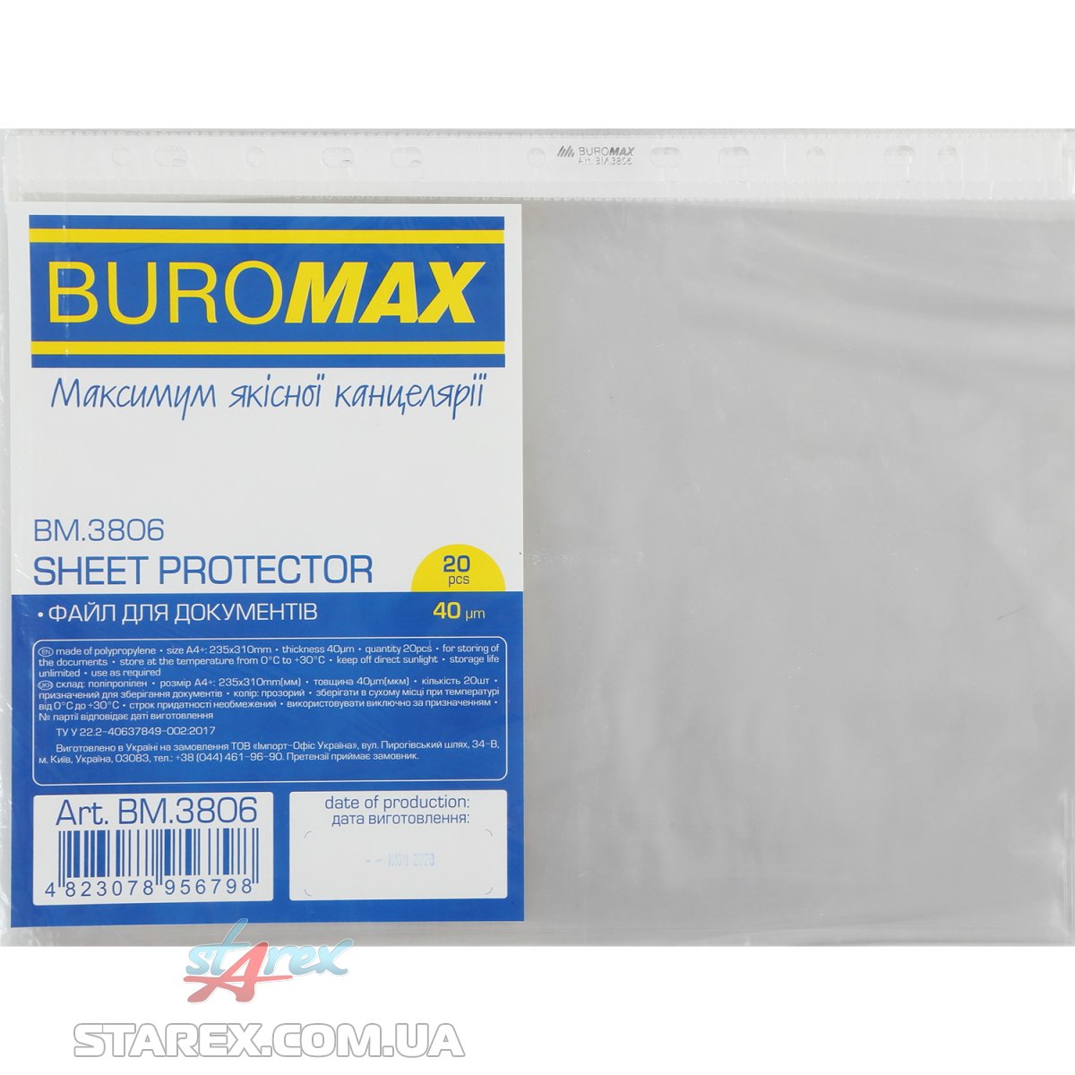 Файл для документов А4+ глянцевый 40микрон, 20шт
