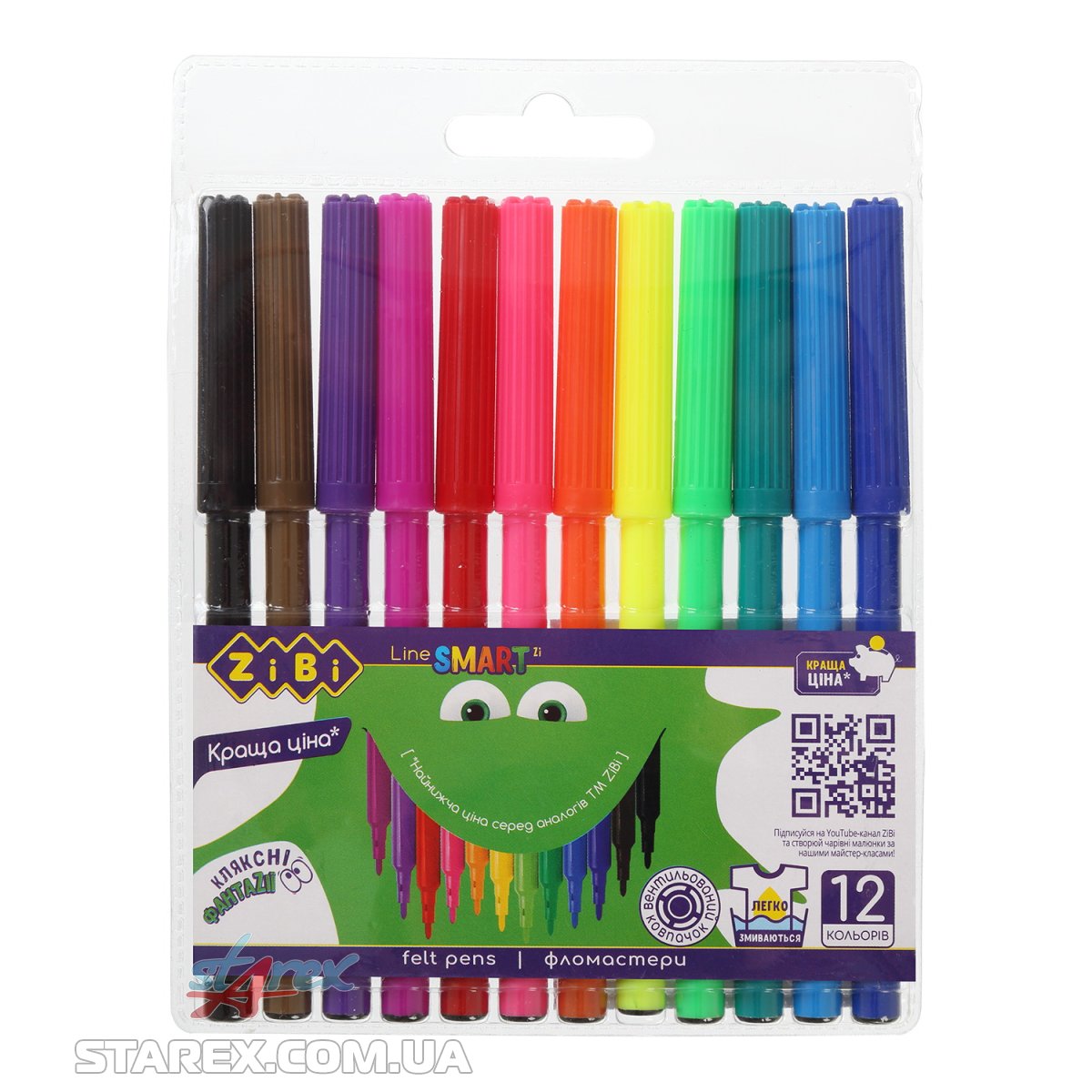 Фломастеры на водной основе, 12 цветов, SMART Line