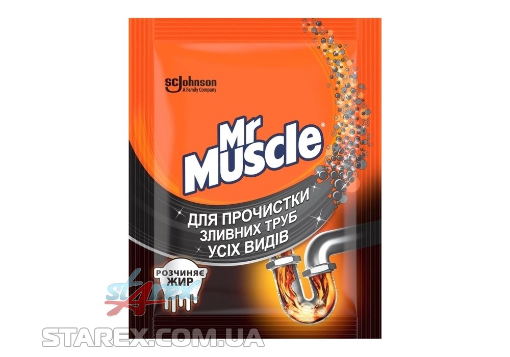 Засіб швидко розчиняє частинки дрібного сміття, які осіли на стінках, і повністю прочищає слабо прохідні зливні труби. Mr Muscle також допомагає позбутися неприємного запаху та бактерій.