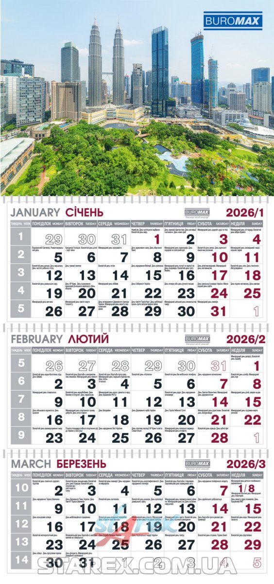 - Календарь квартальный настенный на 2026 год, на трех пружинах