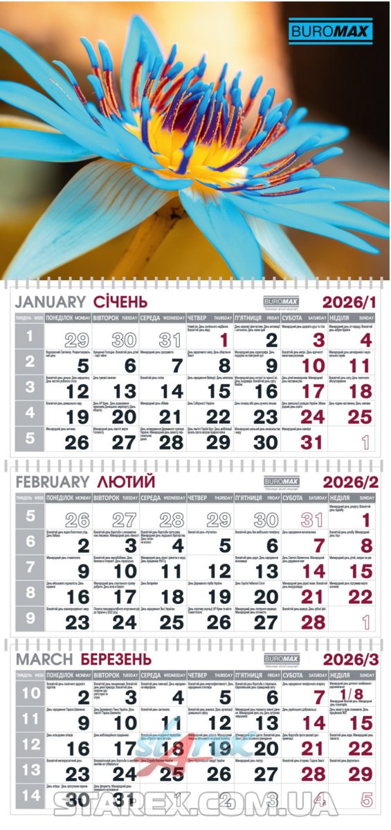 - Календарная сетка на двух языках: украинский, английский