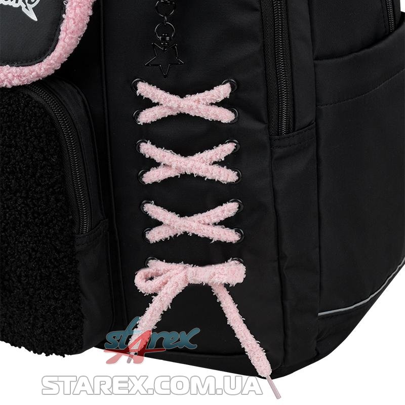 - декор: тканина – гладенький твіл у поєднанні з тканиною букле; світловідбивний друк; декоративна плюшева шнурівка; карабін у формі зірки; акриловий брелок та брелок-підвіска з паракорду на металевому карабіні.