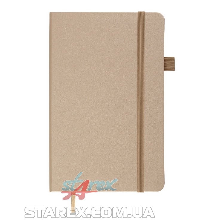 - Твердая обложка из искусственной кожи с продольной резинкой для фиксации блокнота в закрытом состоянии