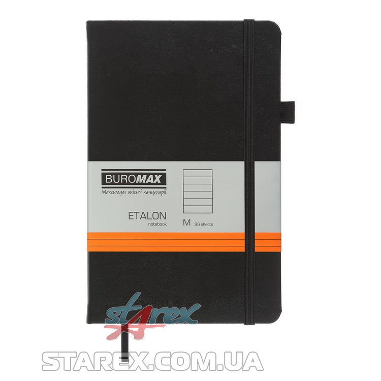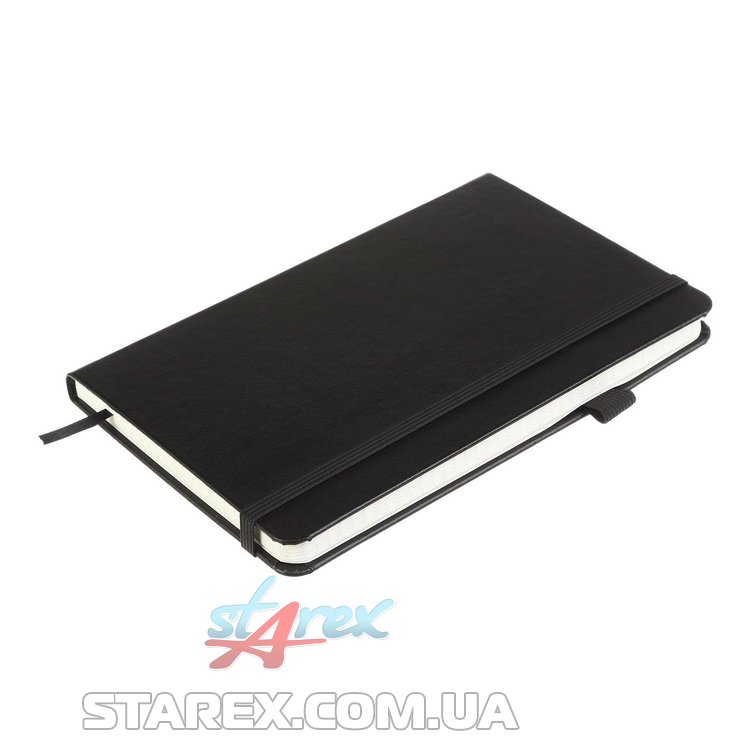- Твердая обложка из искусственной кожи с продольной резинкой для фиксации блокнота в закрытом состоянии